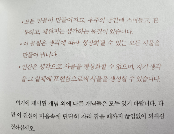 대신, 어떻게 생각해야 삶이 달라지는가, 어떻게 의식이 현실을 창조하는가를 아주 논리적이고 차분하게 풀어냅니다.