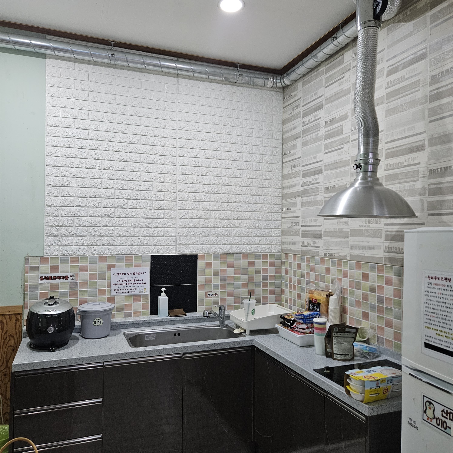 바베큐도 할 수 있는데 미리 신청하면 방 앞에 설치해 주시는데 1층에 위치한 산마루 방은 바베큐를 방 바로 앞에 야외테이블을 깔고 마련해 주어서 그게 불편함이 있었어요. 2층에 있는 복층방들은 방마다 개별 바베큐실이 따로 있으니 이 점은 참고해서 방을 잡는게 좋을 것 같아요. 저희는 바베큐 하는 날 또 비가 와서 문앞에 설치해준 그릴에 고기를 후다닥 모두 가 구워서 방으로 가지고 가서 먹었습니다.
