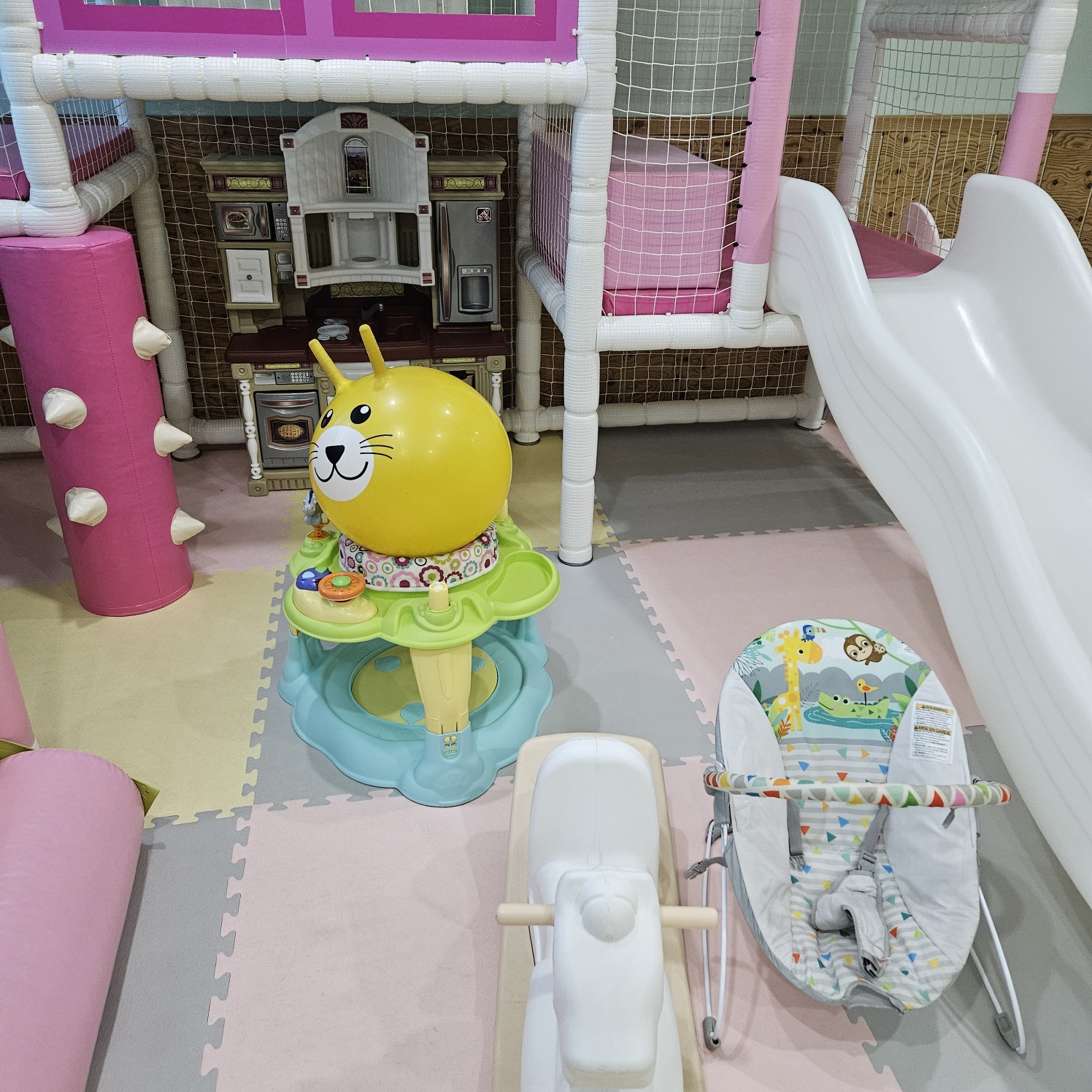 넓은 거실을 가득 채운 정글짐은 정말 크고 아이들이 신나게 놀수 있다는 장점이 있어요. 주방놀이 소품과 붕붕카 바운서 등 어린 아이들도 놀 수 있도록 장난감도 셋팅이 되어 있습니다. 키즈펜션 답게 식기류 아기의자 등 모두 준비되어 있어 따로 챙겨가지 않아도 되더라구요. 수영장은 물이 굉장히 깨끗하고 좋았어요. 다만 간혹 벌레가 물 위에 떠 있어서 남편이 놀아주며 물 밖으로 계속 처리해 주었네요. 시설 면에서는 정말 가성비 최고의 키즈펜션입니다. 하지만 화장실은 정화조 냄새가 올라올 때가 있고 방에는 에어컨이 설치되어 있지 않아서 밤에 잠을 잘때는 조금 더웠던 기억이 나네요. 수건은 2박3일이라 넉넉하게 주셨지만 남편만 사용하고 아이들과 전 따로 챙겨온 수건을 사용했어요. 섬유유연제 향은 강하게 나는데 눅눅하게 마른 느낌이 들더라구요. 예민하지 않고 가성비를 많이 생각한다면 한번 정도 다녀와도 좋은 펜션입니다.