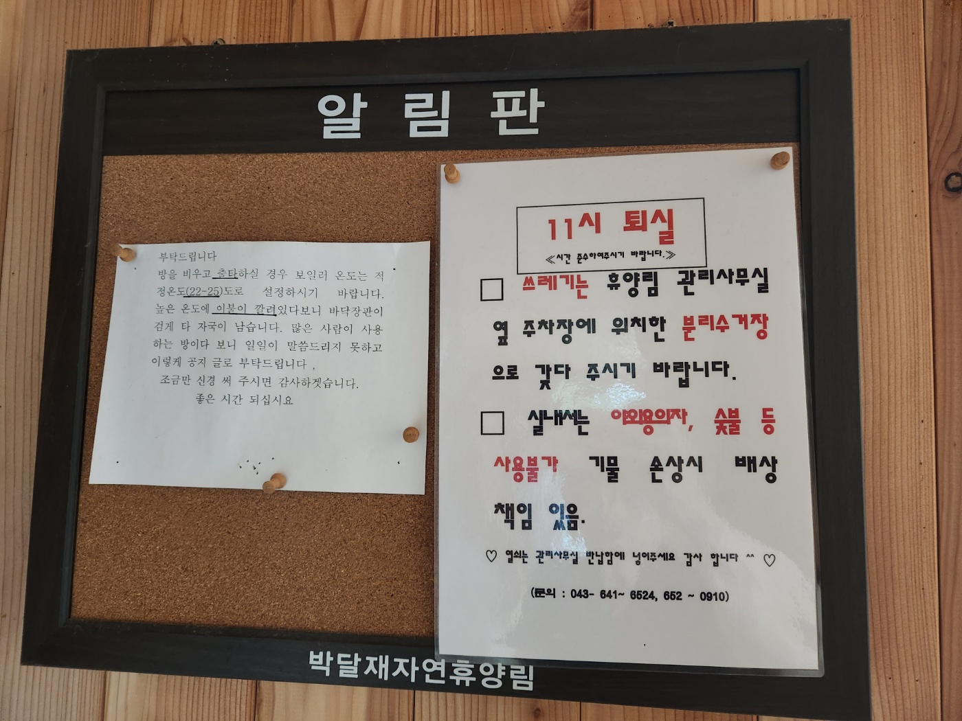 사실 박달재 자연휴양림으로 여행지를 선택하고 온 이유는 산책로를 거닐며 힐링을 하고 싶었기 때문입니다. 하지만 날씨운이 따라주지 않았던 우리 가족의 여행은 엄청난 비와 함께 꼼짝없이 예약한 방에만 있었지만 그래도 빗소리와 함께 야외에서 비 내리는 모습을 보며 바베큐를 즐기는 것 또한 운치있고 굉장히 색다른 경험을 한 여행이었어요. 방에는 전기쿡탑이 설치되어 있고 밥솥도 최신 밥솥에 냄비 칼 도마 식기류 등 없는게 없어서 간단하게 찌게도 끓이고 반찬도 만들어서 끼니도 해결이 가능하고 화장실도 온수 정말 잘 나오더라구요. 게다가 우리가 예약한 금봉 2호 3호 방은 통창으로 보이는 나무들 풍경이 일품이었습니다. 가을에 오면 정말 방에서 바라보는 풍경도 굉장히 좋을 것 같아 꼭 다시 이용할 예정입니다.