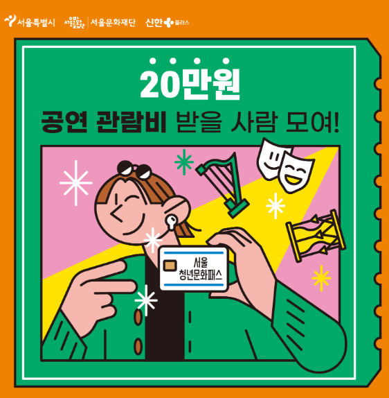 서울청년문화패스는 사회에 첫 발을 내딛는 19세에서 22세 청년들에게 연극, 뮤지컬, 무용, 클래식, 국악 등 다양한 공연 관람을 할 수 있도록 기회를 제공하고 문화예술분야 활성화를 위해 문화이용권을 지원하는 사업이라고 해요. 단, 대중음악 콘서트는 제외됩니다. 향후 각종 할인 혜택과 이벤트 등을 점차 확대하여 청년들이 공연예술에 대한 지속적인 관심과 애정을 지닐 수 있도록 도울 예정이라고 하네요.