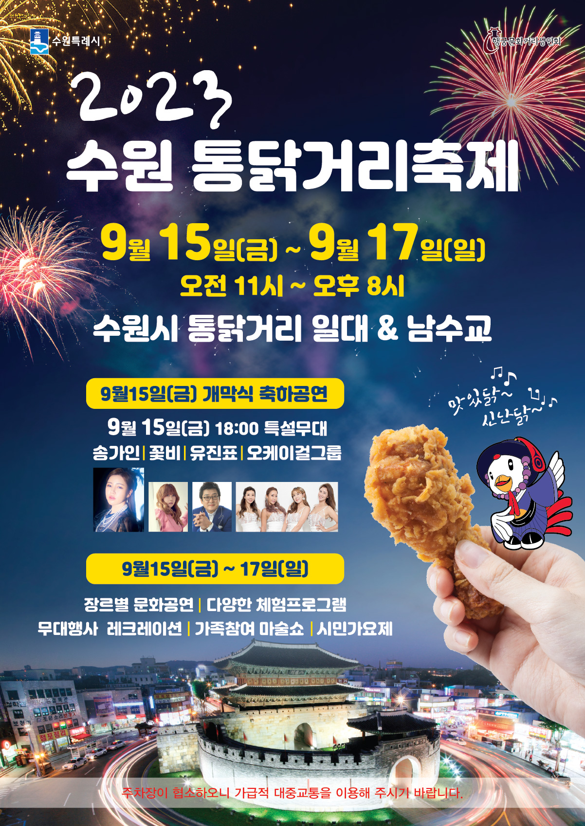 수원 통닭거리 축제 2023 행사 기간 및 정보 개막식 공연 송가인