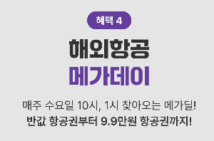혜택4. 해외항공 메가데이 (반값 항공권부터 일본항공권9.9만원 예매찬스 메가딜 이벤트, 선착순 진행)