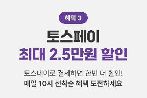 혜택3. 토스페이 최대 2.5만원 할인 (토스로 결제시 적용됩니다. 오전 10시 선착순 혜택)
