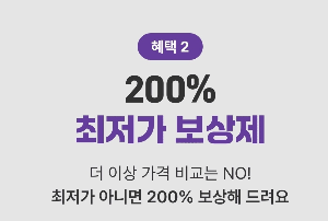혜택2. 200% 최저가 보상제 (예약 전 [최저가보장]을 확인! 더 저렴한 가격응ㄹ 발견했다면 차액의 두배만큼 포인트로 받을 수 있습니다.