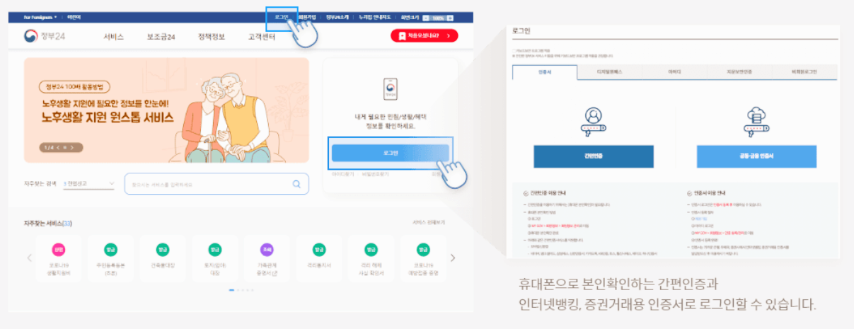1. 정부 24 로그인을 먼저 해야합니다.