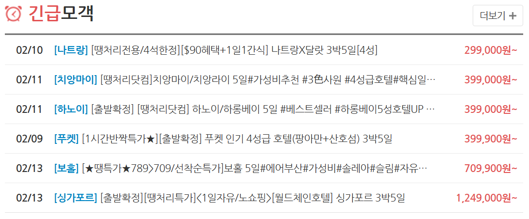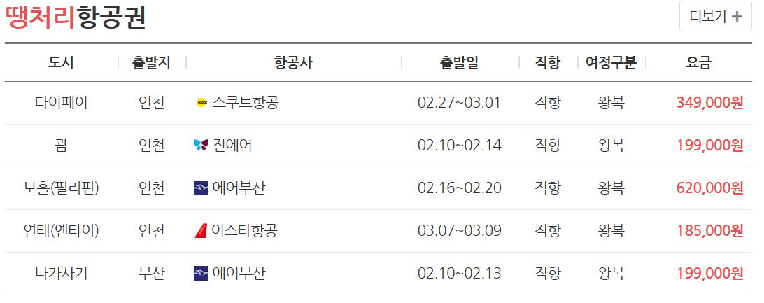 동남아(다낭, 방콕, 나트랑)나 일본(오사카, 후쿠오카)처럼 운항 횟수가 많은 노선일수록 땡처리 물량이 많습니다.