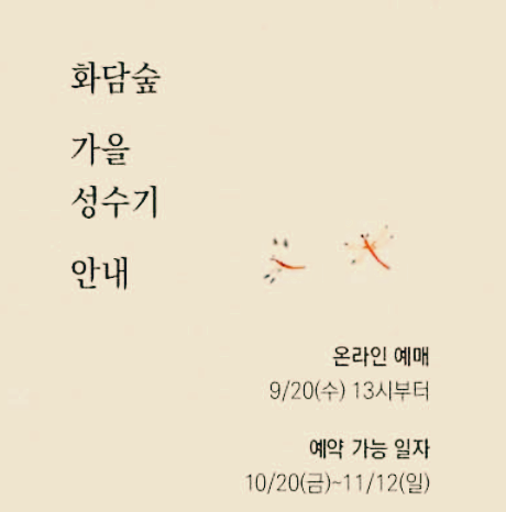 - 온라인 예약 오픈 : 9월 20일 (수) 13시 부터 시작합니다.