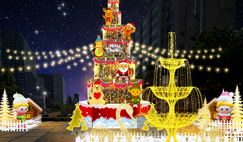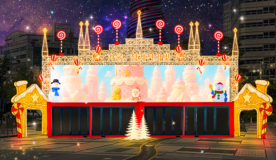 청계광장을 화려한 조명과 달콤한 케이크 트리가 채우며, 겨울 도심을 따뜻하게 밝히는 조명축제로 돌아왔습니다.